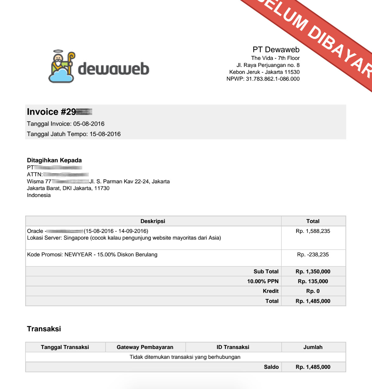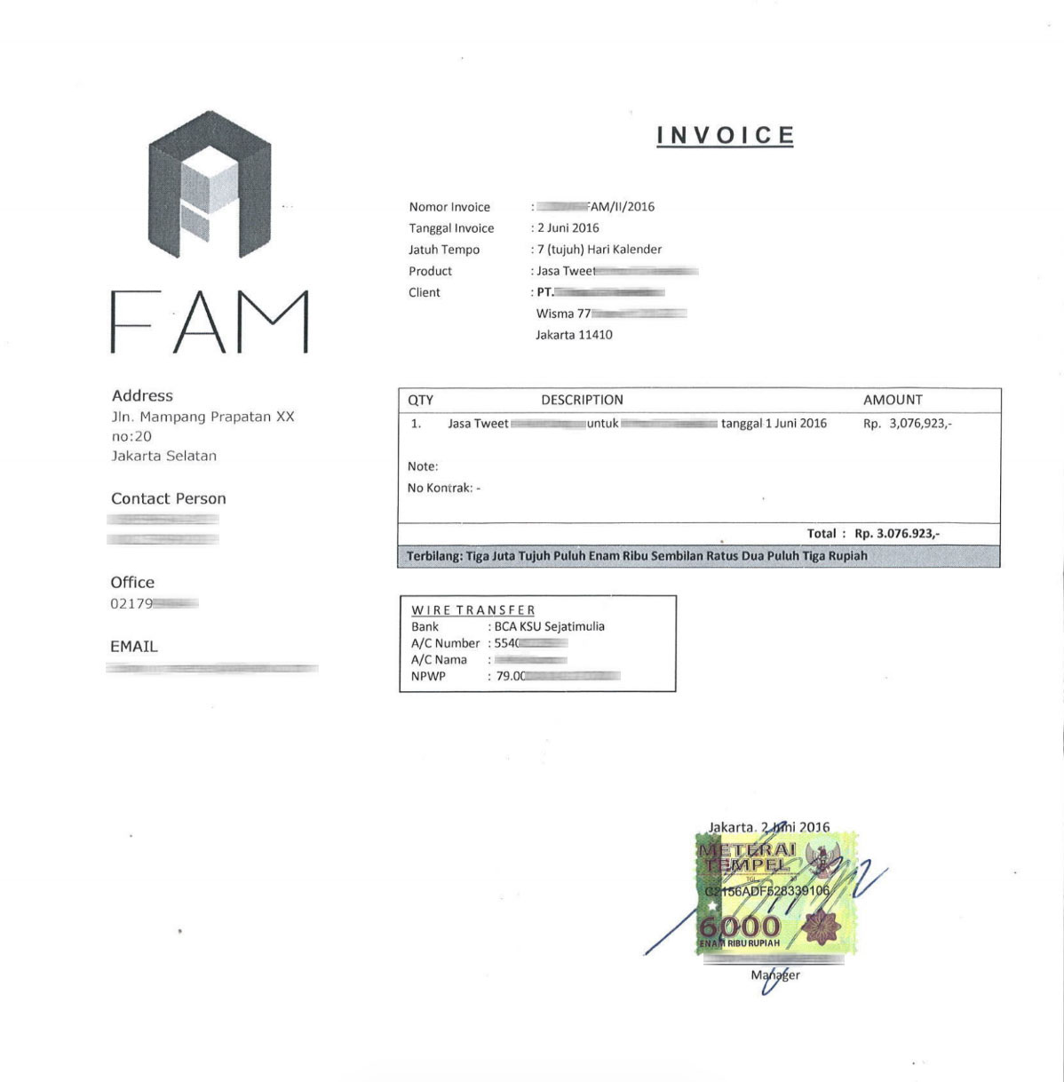 Berikut contoh invoice yang dibuat oleh beragam perusahaan, mulai dari layanan hosting hingga jasa buzzer Twitter.